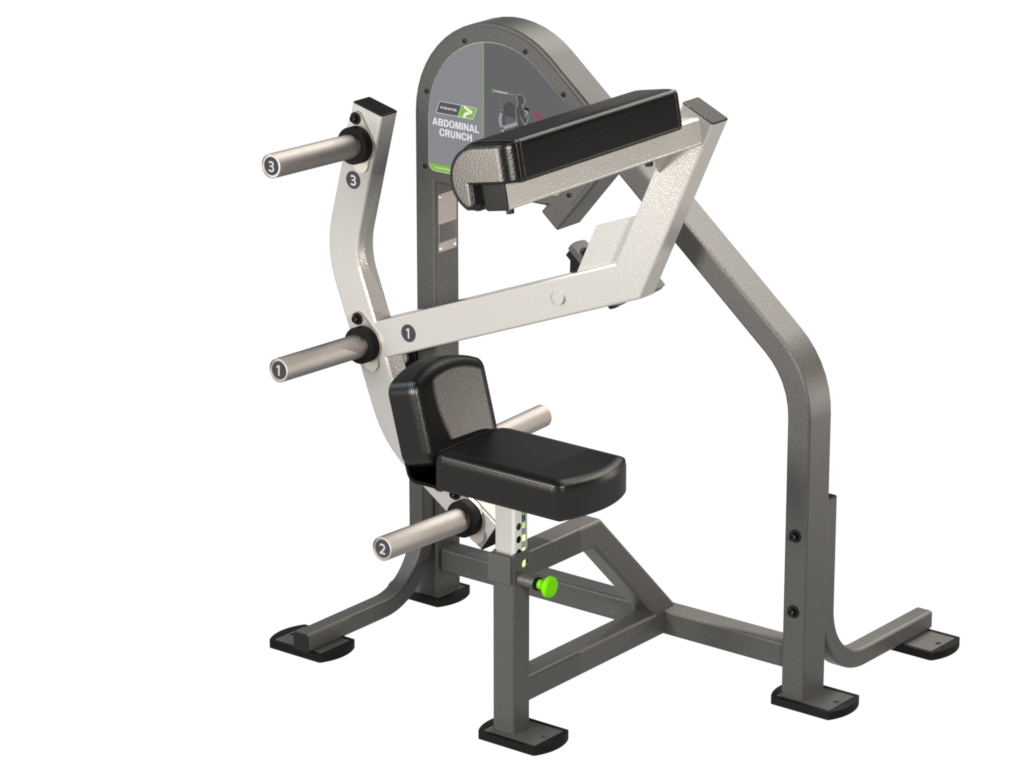 The PRIME Abdominal Crunch Plate Loaded machine offers effortless configuration, with 8 seat height options, a stationary low back pad, and a chest pad to cater to diverse users and body shapes. It features innovative Smart Strength Technology, found in all of their Plate Loaded equipment, which enables users to modify resistance levels to target specific areas during the exercise routine.