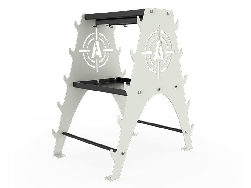A storage solution for your Fixed Barbells that also saves space by optimizing storage for your handles and smaller accessory items.