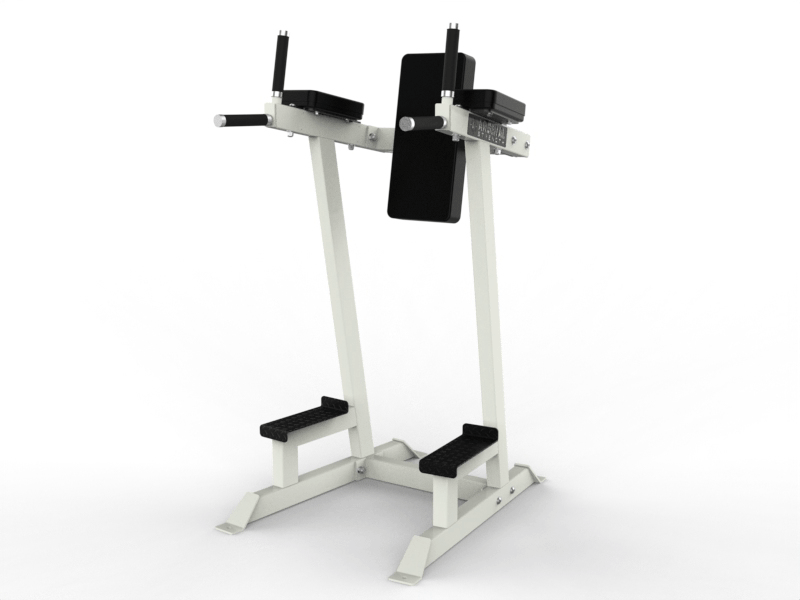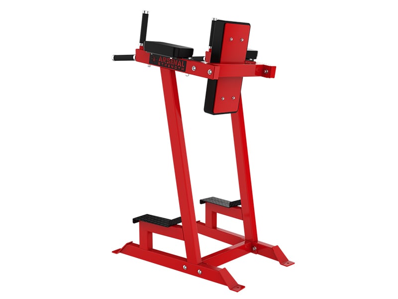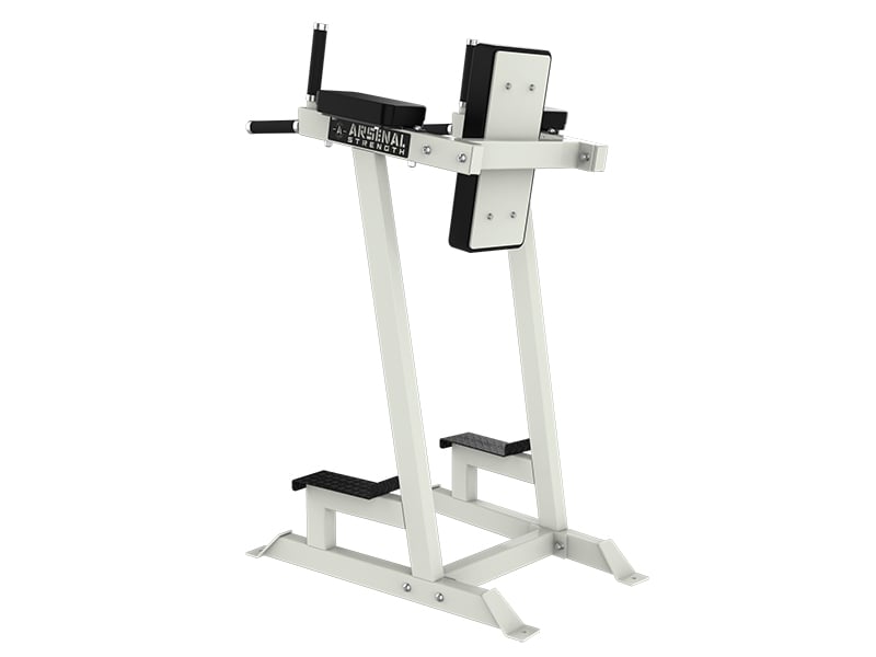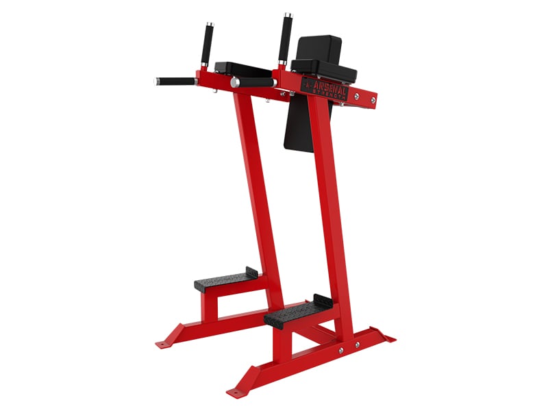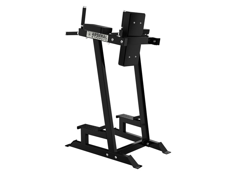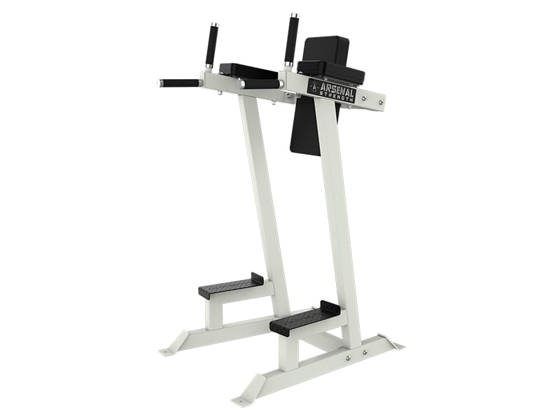 The Arsenal Strength Alpha Vertical Knee Raise features dual function, for focus on a core and handles for a dip station.