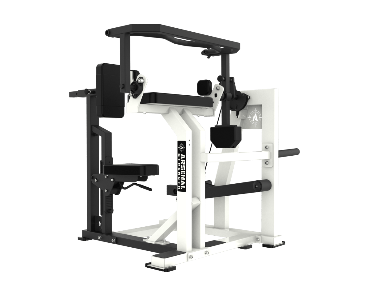 The Arsenal Strength Forgex Seated Tricep Extension delivers powerful, isolated tricep training in a comfortable and efficient design. Featuring an adjustable back pad for both depth and angle, along with an adjustable seat height, this machine ensures perfect positioning for every user. The ergonomically placed knurled grips provide a secure hold throughout each rep, while the compact footprint makes it ideal for any training space. With standard weight storage included, this unit combines functionality, comfort, and performance for serious strength training results.