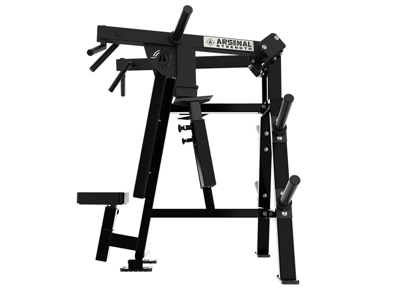 The Arsenal Strength ReLoaded Shoulder Press features multiple knurled grip options for exercise variability. Adjustable seat position and gas assisted adjustable range limiters allow each user to find their proper fit in this piece.