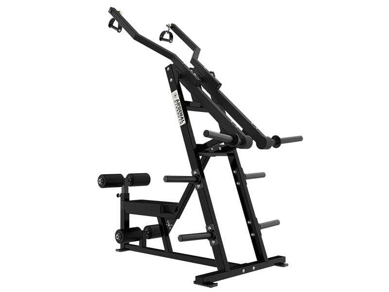 The Arsenal Strength Reloaded ISO Lat Pulldown is a plate loaded piece. This piece challenges users in two planes of motion. It features counterbalanced arm for smooth transitions. Also, the lifter has to control the lateral convergence and the vertical press movement. Handles offer a 360 degree pivot and side to side for various grip options.