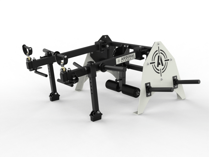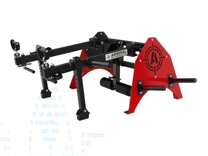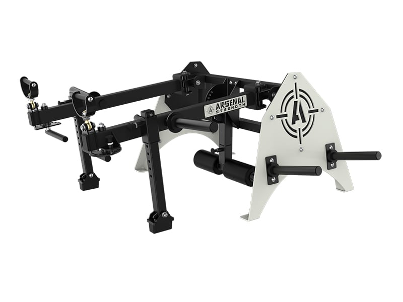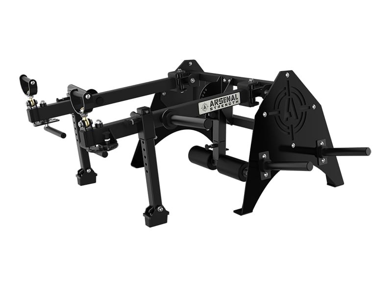 The Arsenal Strength Reloaded Multi-Flex is designed to allow plate loaded training for all the major muscle groups. The Reloaded Multi-Flex features multiple handle options, adjustable range limiters, fold away split squat roller pads and free floating movement arms. All these features allow the user to have a full body training session with over 30 exercise variations. Heavy duty and custom made to order with your choice of frame color. Made in the USA. Starting Weight: 25 lb per arm