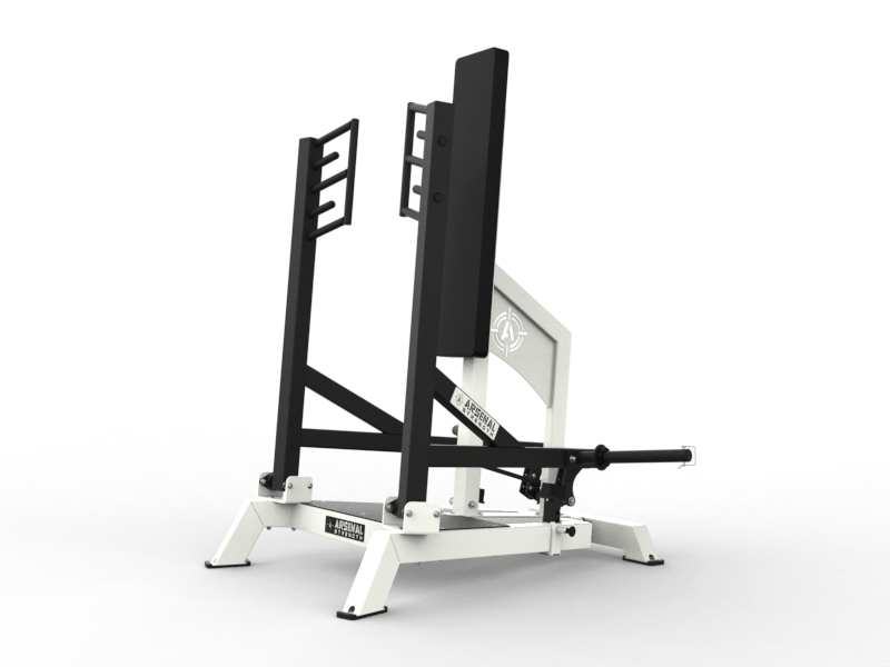 The Arsenal Strength Reloaded Standing Chest Press offers a one-of-a-kind chest training experience from a standing position with iso lateral workarms that move in a converging motion. Featuring 5 horizontal grip positions and 2 neutral grip positions, this machine provides the user with 4 range-limiting positions and a prestretch lever for an easier starting position. Starting movement weight: 20lbs
