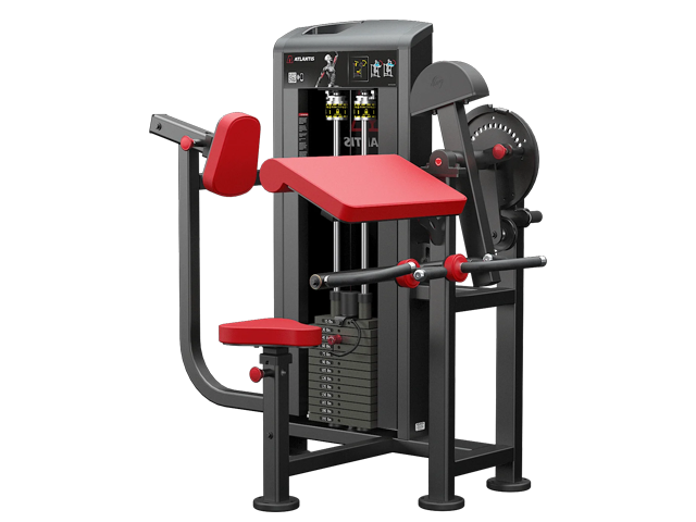 The ATLANTIS Biceps-Triceps Combo Machine is a versatile and space-saving solution for targeted arm workouts. It features an adjustable sternum pad to ensure proper axis of rotation alignment, while the seat and backrest can be adjusted for optimal user positioning. The elbow pad is designed with a rounded edge for enhanced comfort.