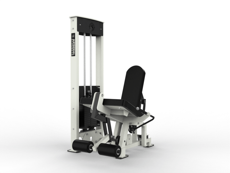 The Arsenal Strength M1 Leg Extension features a gas assisted back pad and a self-adjusting lower leg pad that allows for an easy proper setup. Its center-pull belt driven design ensures that the smooth movement properly targets the quadricep through the entire range of motion.