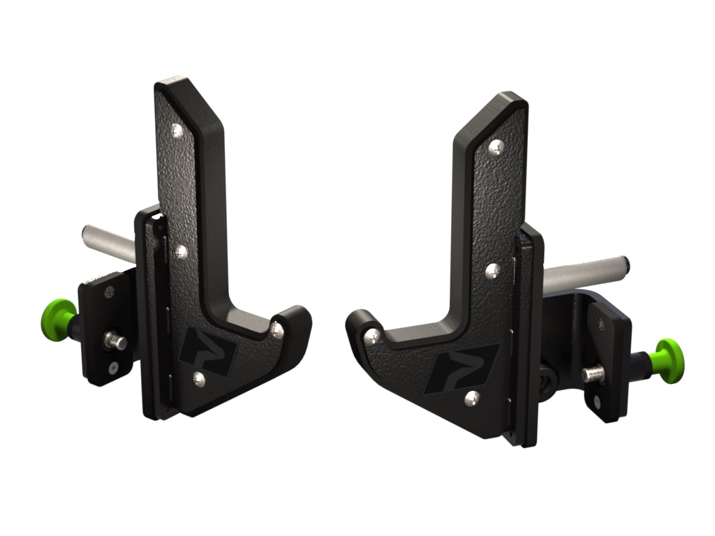 The Prodigy J-Hooks 2.0 (pair) are precision-engineered attachments that enhance the functionality of your power rack. Crafted from robust 2″ x 3″ steel tubing and coated in durable powder, each hook is equipped with UHMW protective surfaces to safeguard your barbell finish. Featuring a reinforced design for added strength and stability, these hooks securely support heavy loads while facilitating smooth racking and un-racking. Compatible with standard 3-inch square uprights and equipped with safety popper pins, the Prodigy J-Hooks 2.0 deliver commercial-grade reliability and ease of use for any serious lifter.