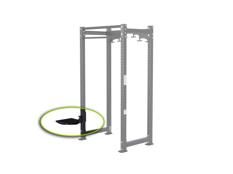 The Prime Fitness Prodigy Step-Up Platform is a heavy-duty training accessory designed to integrate seamlessly with compatible rack systems.